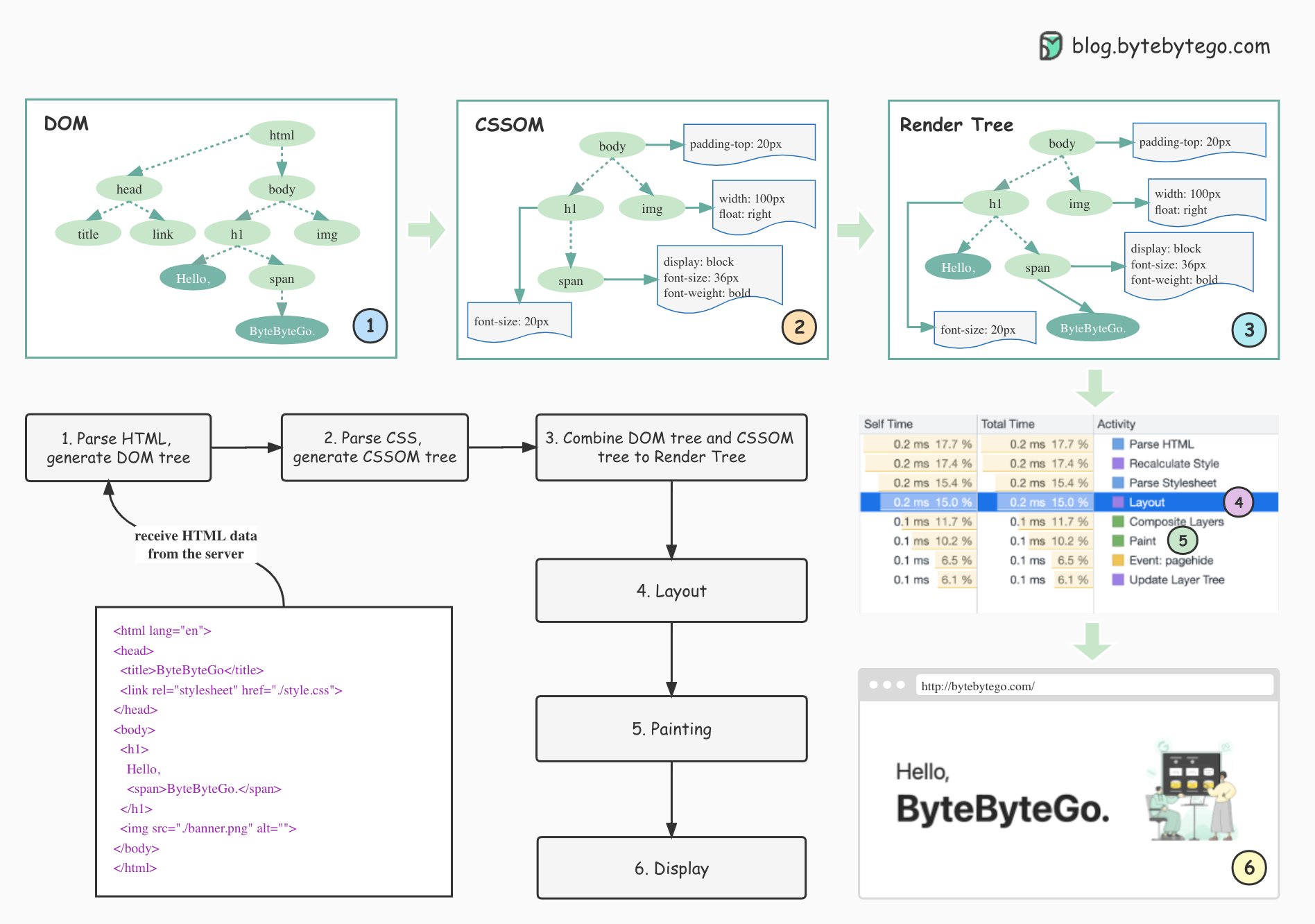 - Le navigateur va créer un DOM en C++ qui va être utilisé pour afficher la page.